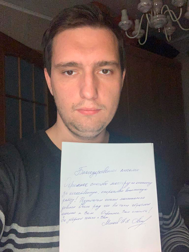 Исполнитель ездит на заказы по уборке в команде опытных домовят и проходит еще один инструктаж.