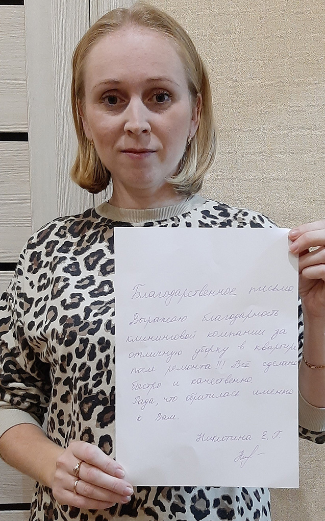 Если в процессе оказания клининговых услуг исполнителем будут повреждены любые предметы вашего интерьера, мы выполним бесплатный ремонт или предоставим 100% компенсацию.